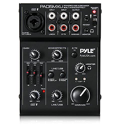 Here’s another compelling option from Pyle. It has fewer channels than the model above but also has a few more features that let you do more with the signals you’re mixing—far more controls and options than you’ll find on most battery-operated mixers.