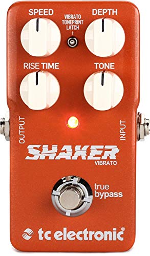 The Danish company TC Electronics has gained international acclaim for its wide array of effects options. Their pedals are intuitive, compact, and consistent. With the Shaker, you get four control knobs: the standard speed, depth, and tone controls, as well as one for rise time, which changes how long the vibrato takes to reach its specified depth, letting you alter the shape of the vibrato.